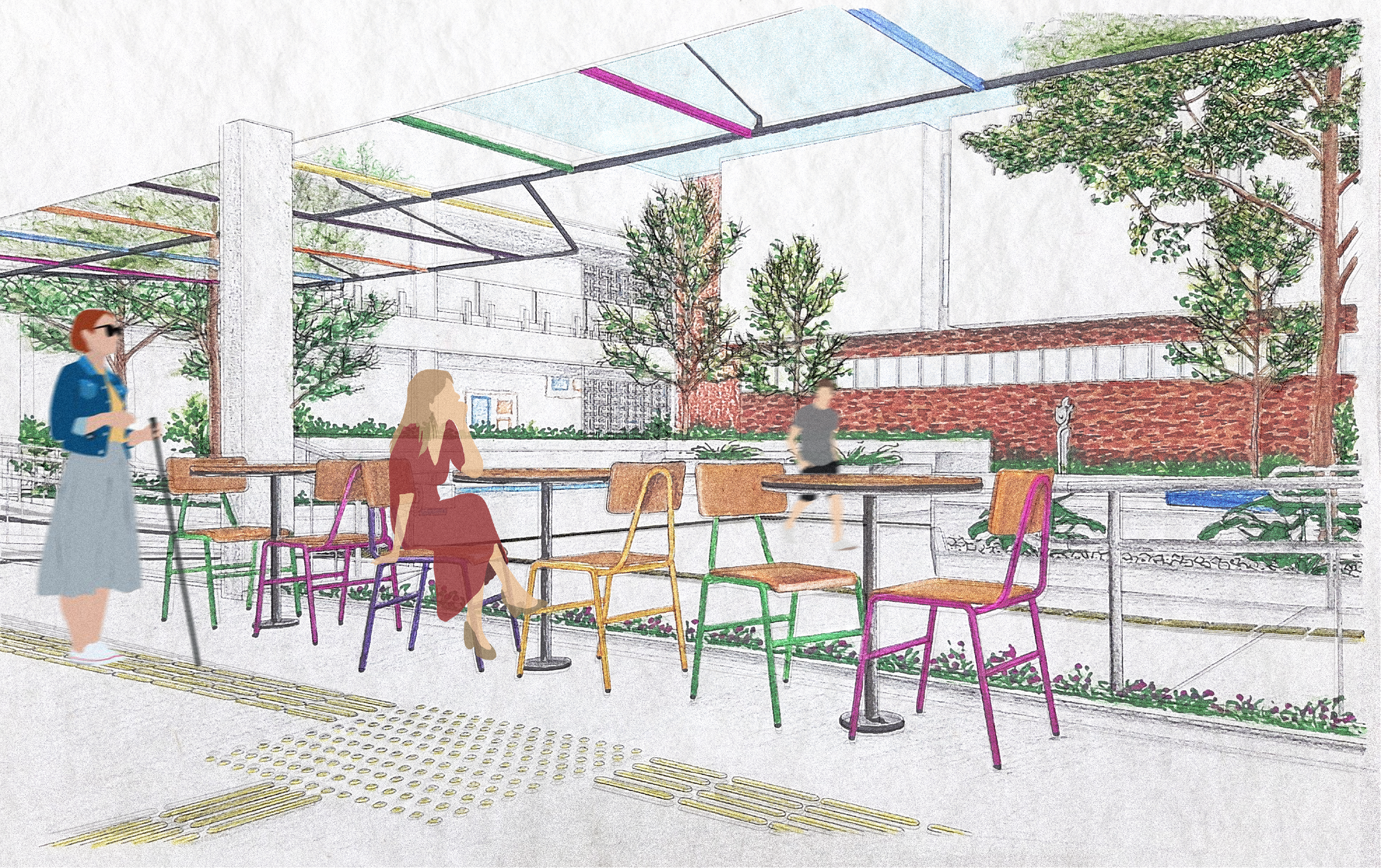 A ideia do projeto, portanto, é apropriar-se da condição física e simbólica das pontes, adotando função e forma como partidos. Para tanto, buscou-se realizar pontes com história, recorrendo a materiais que permitissem o entremear do futuro com o passado. Valeu-se da forma pragmática dos elementos acessíveis para explorar as diversas formas de linha e conexão, incorporando design universal e acessibilidade na proposta estética. Os maiores desafios do projeto eram sua aplicabilidade e a falta de recursos, considerando a necessidade de manutenção de uma instituição pública. Sendo assim, a abordagem sobre a sustentabilidade foi crucial no projeto, considerando vida útil, durabilidade e aproveitamento de elementos existentes.